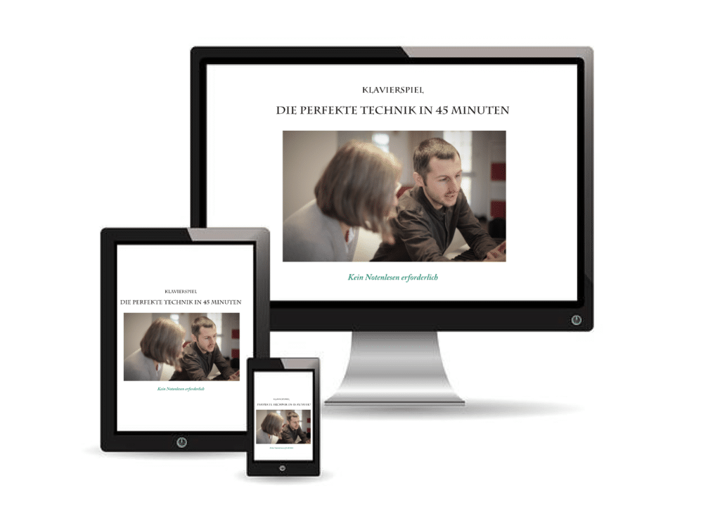 Du willst deine ersten Klavierübungen machen und weisst nicht, wo anfangen? Damit du dir, als Anfänger*in, keine ungesunden Bewegungen einübst, ist es wichtig zu wissen, was du machst. Zu diesem Zweck habe ich das eBook «Klavierspiel: Die perfekte Technik in 45 Minuten» geschrieben, das dir die perfekte Spieltechnik erklärt – kurz und bündig.
