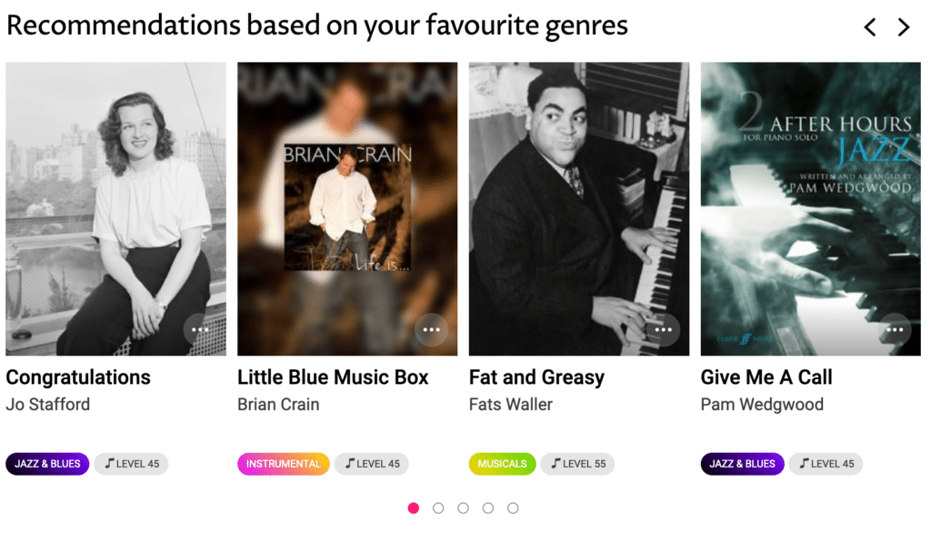 Zusätzlich kannst du dein Spiel-Niveau und deine bevorzugten Musikstile angeben und Oktav schlägt dir automatisch Stücke vor, die dir gefallen könnten.