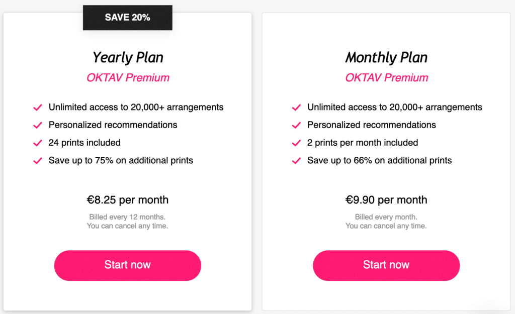 In diesem Artikel geht es um Oktav – die Flatrate für Klavier-Noten – und meine ersten Erfahrungen damit. Oktav ist ein Online-Noten-Archiv, das dir Zugriff auf ihr ganzes Sortiment erlaubt. Du zahlst dabei nicht für die einzelnen Stücke, sondern lediglich eine monatliche oder jährliche Abogebühr. Dasselbe Prinzip wie Spotify oder Netflix.