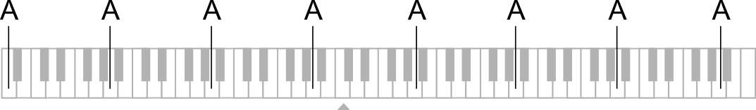 Wichtig ist hier, dass wir nur von Tönen einer Oktave sprechen. Das Klavier hat zwar in der Regel 88 Tasten – und damit 88 unterschiedliche Töne. Diese Töne wiederholen sich jedoch in Oktaven-Abschnitten. Jeder der 12 unterschiedlichen Töne kommt auf dem Klavier 7 mal vor, wie hier z.B. der Ton A: